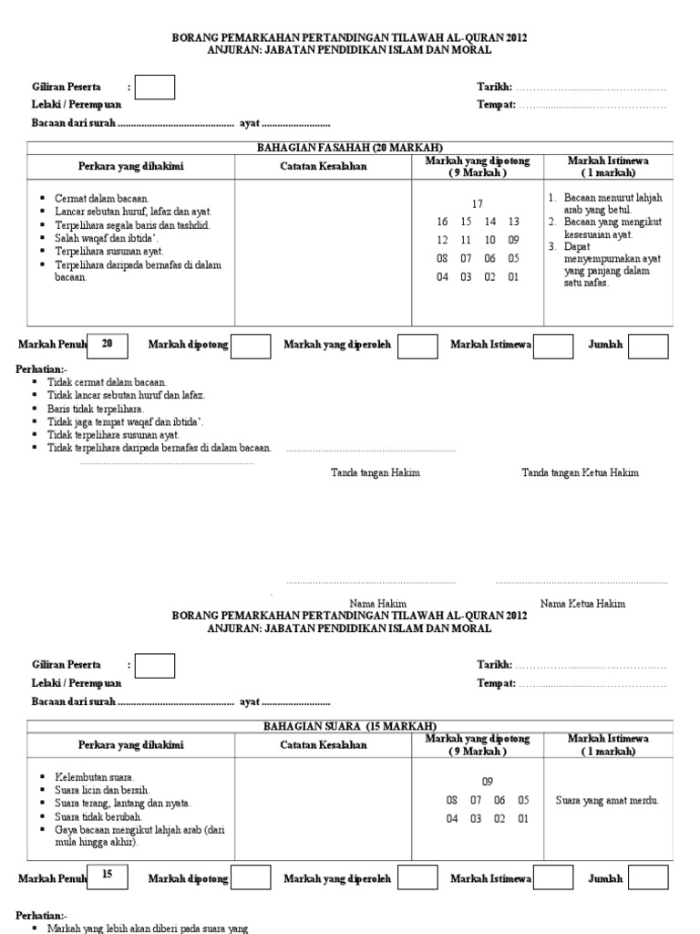 Borang Pemarkahan Pertandingan Tilawah Al Quran 2012 Pdf